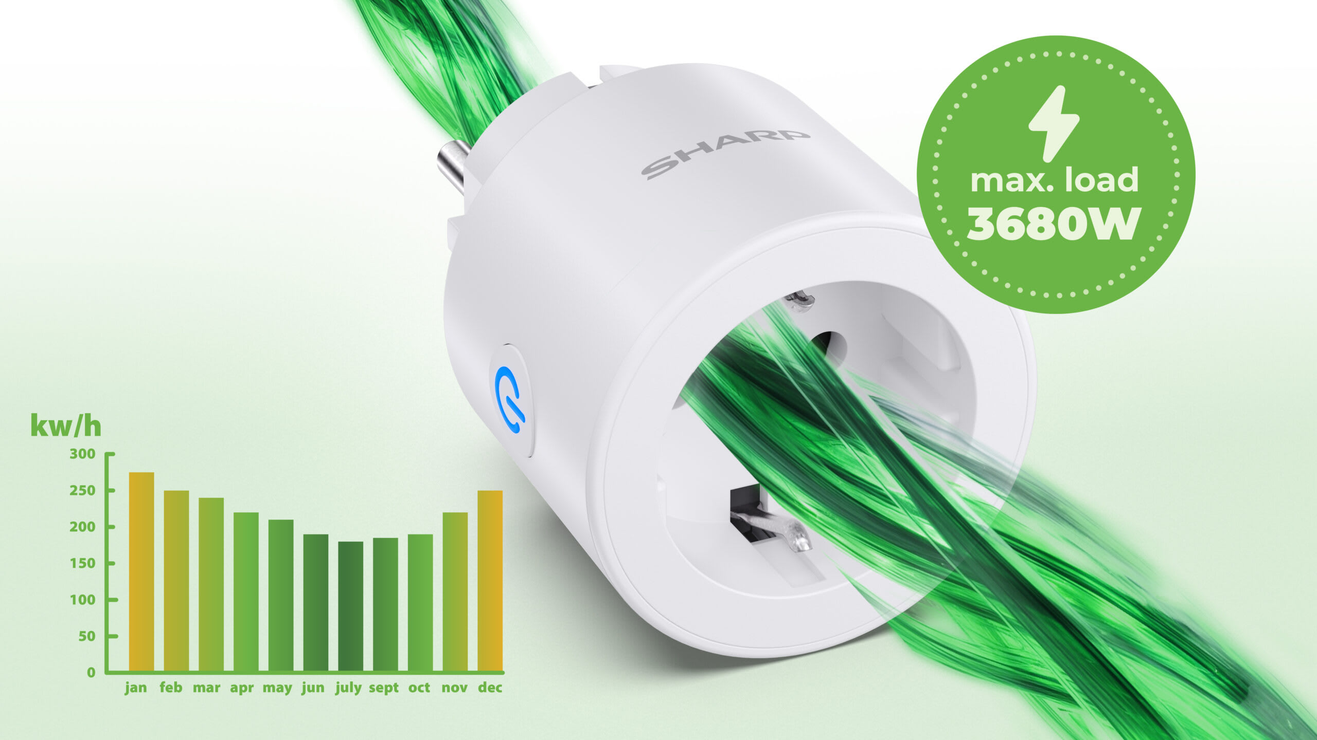With a standard VAC power supply and a maximum connected load of 3680 W, you can safely provide your devices with a smart connection.